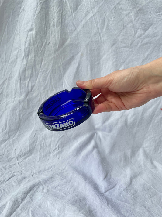 Cobalt Blue Glass Cinzano Vintage French Ashtray